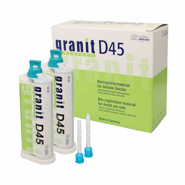 به منظور استفاده در کاربردهای مختلف و نیز براورده کردن نیازهای شخصی دندانپزشکان و تکنسین های دندانپزشکی ، طیف گسترده ای از مواد ثبت بایت برای مصرف کنندکان موجود است . همه مواد از جنس سیلیکون افزایشی A – Silicones با دقت و کیفیت بالایی هستند و از نوع 1 (heavy body ) دارای تیزوتروپی عالی هستند که مانع از جاری شدن مواد به طور ناخواسته میشود و همچنین ابعاد ثابتی داشته و میتوان به دفعات از آن استفاده کرد . به طور عمده این محصولات از نظر درجه سختی ، Setting Time در دهان ، میزان خاصی از غلظت متفاوت هستند . بنابراین granit PERFECT D45 موادی هستند که به سرعت(یعنی ظرف مدت 30 ثانیه ) در داخل دهان بیمار ، set میشوند